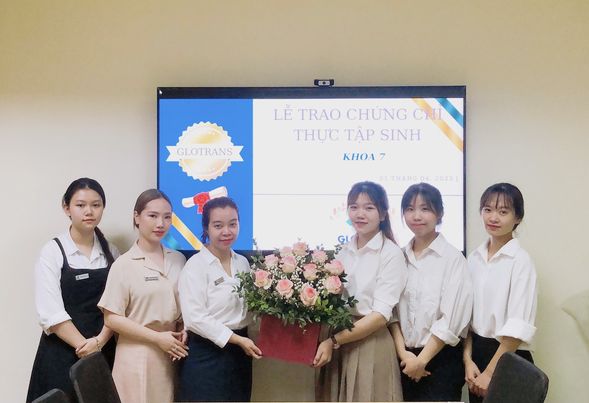 Glotrans Hải Phòng trao chứng chỉ cho các bạn thực tập sinh khoá 7 đã hoàn thành khóa thưc tập tại Glotrans Hải Phòng tại vị trí Nhân viên Làm Giá Cước – chứng từ và Sales Logistics.