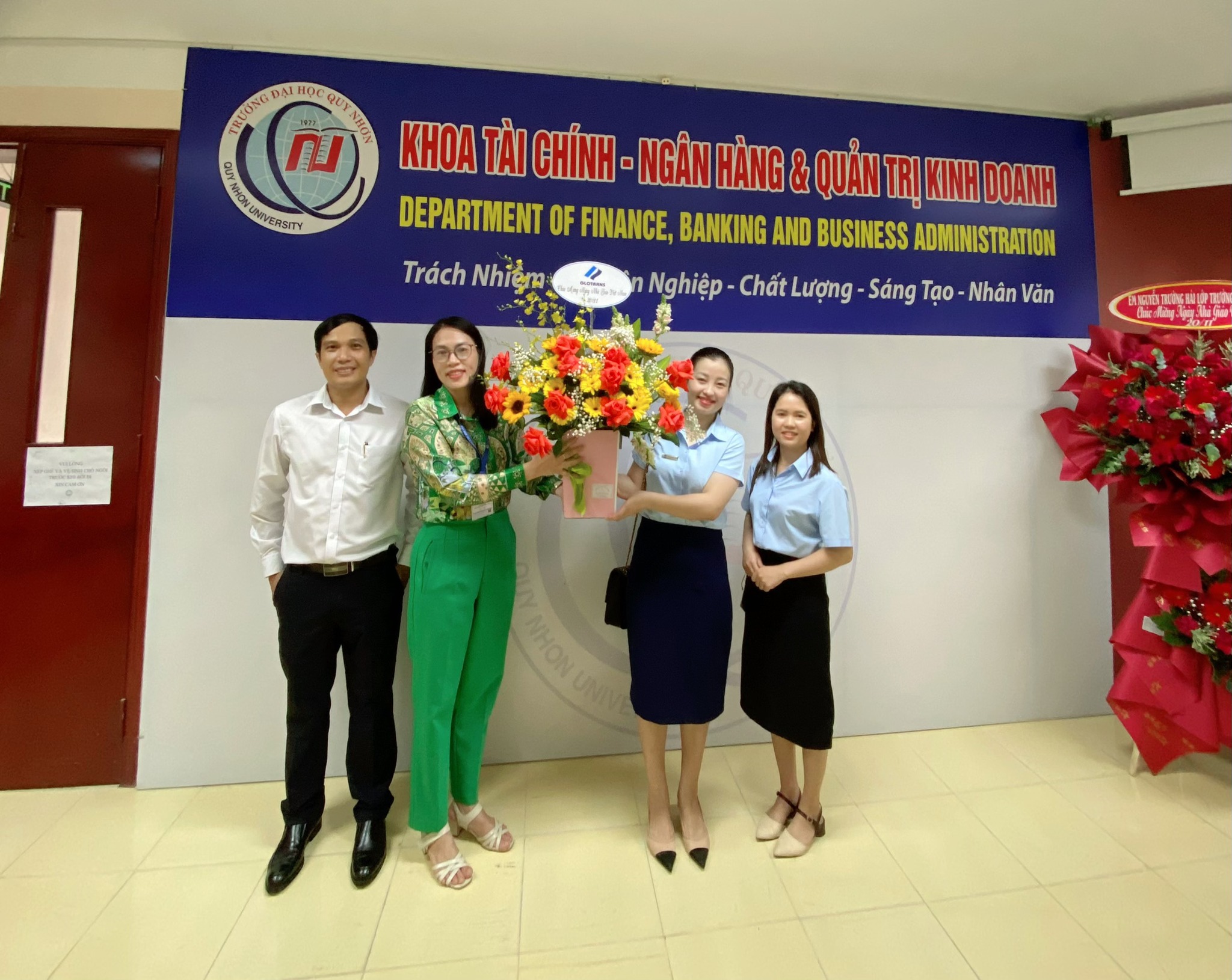 Nhân ngày kỷ niệm 40 năm ngày nhà giáo Việt Nam, Glotrans Quy Nhơn xin được gửi đến các giảng viên Khoa Tài Chính – Ngân Hàng & Quản Trị Kinh Doanh nói riêng, trường Đại Học Quy Nhơn nói chung bó hoa tươi thắm và những lời chúc tốt đẹp nhất.